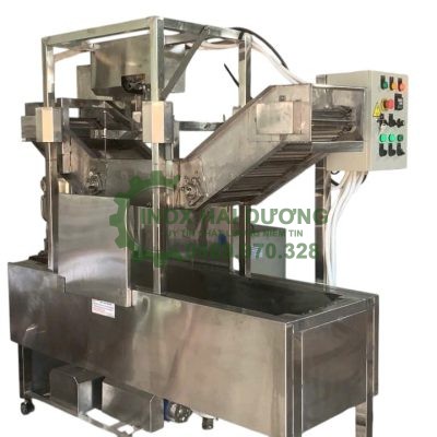 Máy chiên băng tải có hệ thống lọc dầu tự động là thiết bị không thể thiếu trong dây chuyền sản xuất thực phẩm hiện đại. Với thiết kế băng tải hai lớp chuyên biệt, sản phẩm được chiên ngập hoàn toàn trong dầu nhờ lớp băng tải trên giữ chặt bề mặt, trong khi lớp băng tải dưới liên tục đẩy sản phẩm về đầu ra giúp quá trình chiên nhanh chóng, đều màu, giữ trọn hương vị.