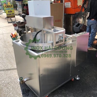Máy chiên cơm cháy băng tải dài 4 mét có hệ thống lọc dầu và nâng hạ tự động